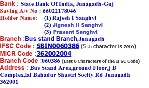 | Please send an email to jigsan75@gmail.com immediately after making the transfer giving the details of the same |